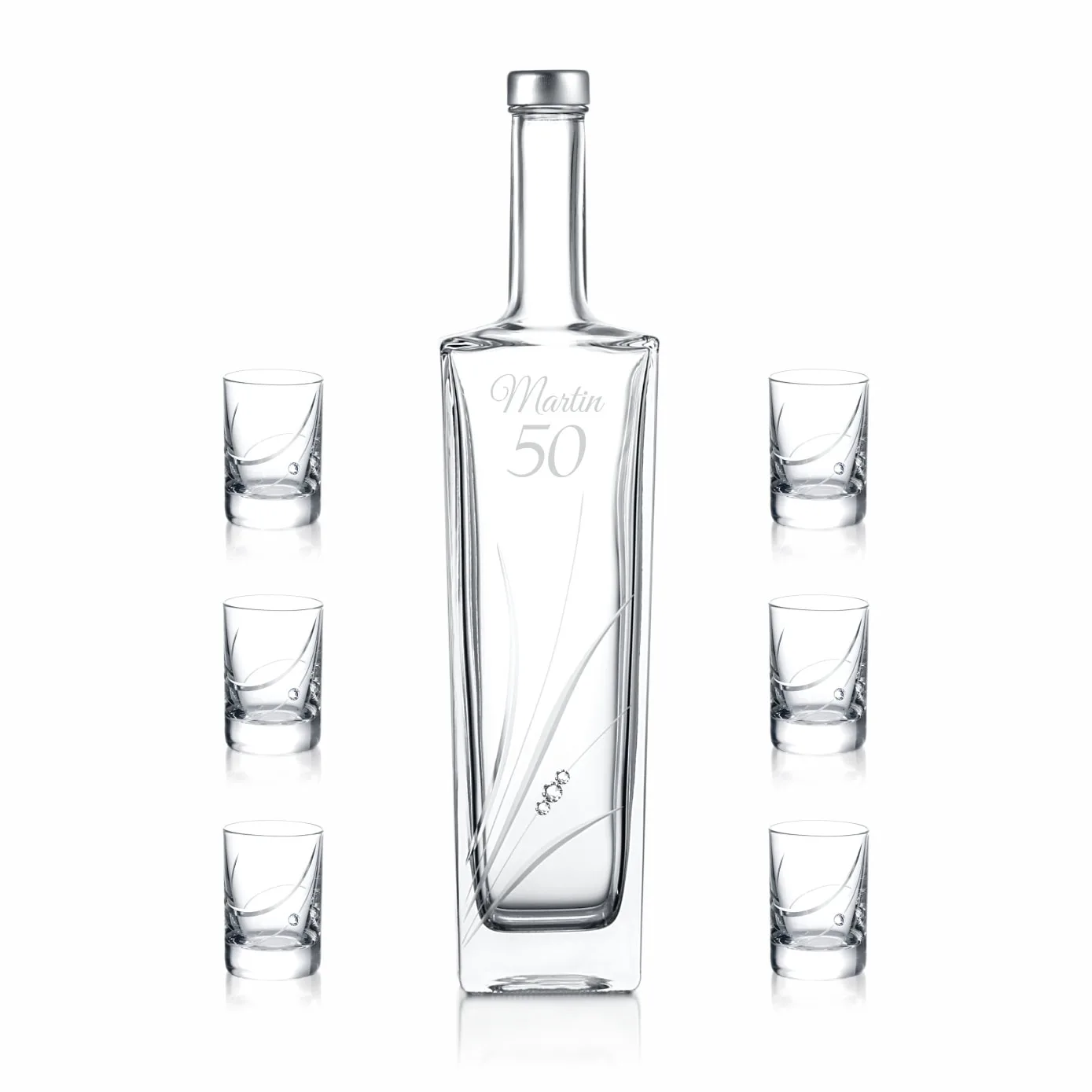 Obdarujte své blízké jedinečným osobním darem. Napište číslo životního jubilea nad dekor nebo jméno oslavence láhev Grass osobnější. Text Jožkovice je možné nahradit libovolným jménem nebo příjmením dle Vašeho přání. Dekorace je zhotovena tradiční řemeslnou technikou broušením a gravírováním skla. Zboží dodáváme v dárkovém obalu Brilant, který je vhodný pro přímé darování. Sklo je vyrobeno z bezolovnatého křišťálu, čímž šetříme naše životní prostředí. Doporučujeme mýt ručně.